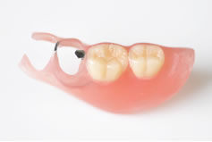 部分入れ歯の留め金が歯ぐきの色をしているため、ほとんど目立ちません。装着感もよく入れ歯でいることを忘れるほどに噛めます。金属アレルギーの心配がありません。 美しさ:★★★★★ 耐久性:★★★★ |